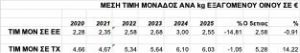 Τέλος συνεπεία των ανωτέρω μετά από πολλά χρόνια (2010) μειώνεται η μέση τιμή μονάδος, ανά εξαγόμενο κιλό οίνου προς Τρίτες Χώρες. Το 2025 παρουσιάζει ελαφρά μείωση κατά 1,05% (6,03 €/kg/2025 – 6,10 €/kg/2024), ενώ αυξητική τάση της μέσης τιμής μονάδος καταγράφεται σε σχέση και με την προηγούμενη 5ετία, με αύξηση που ανέρχεται σε 14,22% (Μέσος Όρος τιμής 5ετίας 5,28 €/kg), γεγονός που σταθεροποιεί την διαχρονική άνοδο της μέσης τιμής.