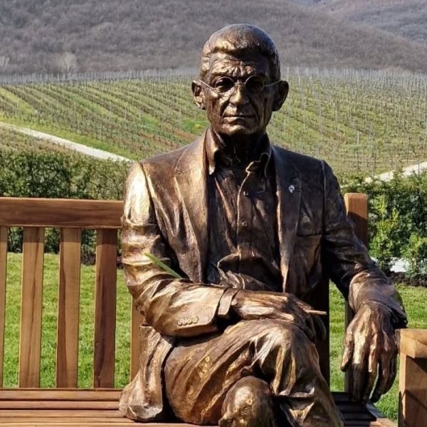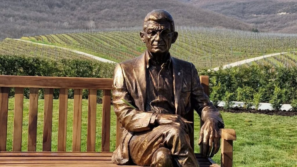 Στα αμπέλια του στο κτήμα της Νάουσας «επέστρεψε» ο Γιάννης Μπουτάρης με τη μορφή του -σε γλυπτό φυσικού μεγέθους κατασκευασμένο από ορείχαλκο- καθισμένη σε...