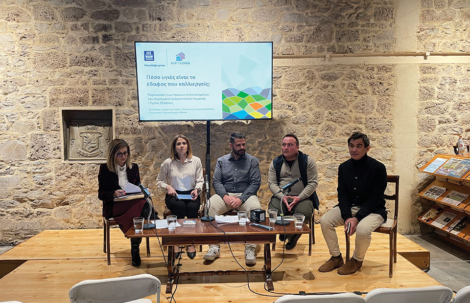 Ενδιαφέρουσα ήταν και η αναφορά στον κίνδυνο που αντιµετωπίζουν τα Ευρωπαϊκά εδάφη, µε χαρακτηριστικό παράδειγµα ότι το 60% των εδαφών θεωρούνται µη υγιή και κινδυνεύουν από διάφορους παράγοντες ερηµοποίησης όπως είναι: η ρύπανση, η διάβρωση, η αλατότητα κ.ά.