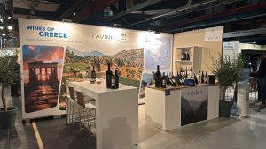 Στο περίπτερό μας παρουσιάστηκαν οι ετικέτες Mega Spileo Estate & Cuvee III από την γκάμα του Κτήματος Μέγα Σπήλαιο και από τη σειρά κρασιών της Cavino τα εξής: Historoots(η νέα σειρά της Cavino που αναδεικνύει τις πιο κλασσικές ελληνικές ποικιλίες με μια πιο σύγχρονη ματιά), Pandora, Nemea Reserve & Nemea Grand Reserve καθώς και τα γλυκά κρασιά Mavrodaphne & Samos.