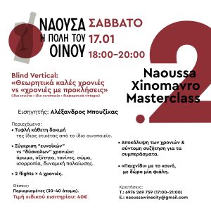- Masterclass 1 – Xinomavro Crossroads: Νάουσα & άλλες περιοχές” (15:00–17:00)